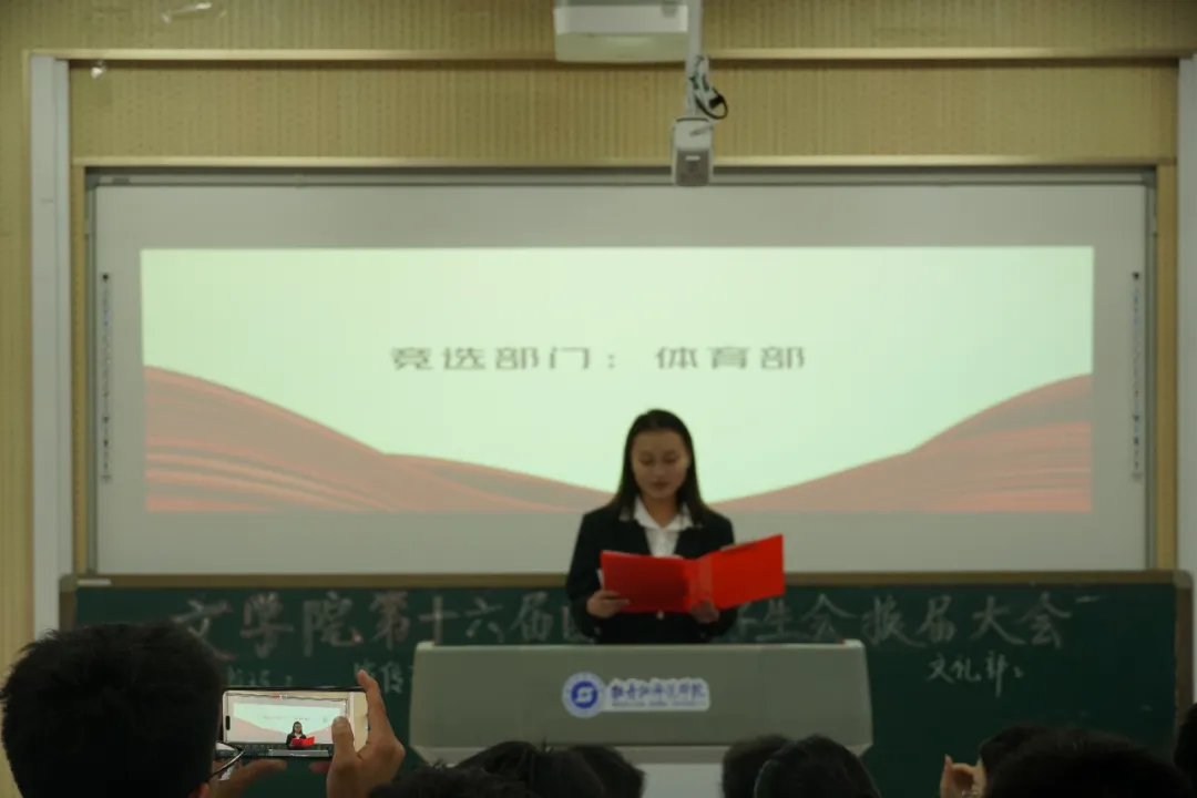 会议第二项,各位竞选者依次上台演讲,分享自己在团总支学生会的工作中组织开展相关活动的经历、取得的成绩以及对未来的展望,充分展示了自己的才能与潜力,表明了强烈的任职愿望,彰显了锐意进取的精神风貌,以及乐于奉献、服务同学、共创辉煌的决心与担当。全场的热烈掌声不仅是对他们能力的肯定,更是对他们未来学生工作的期待。演讲结束后,全体学生代表进行投票。