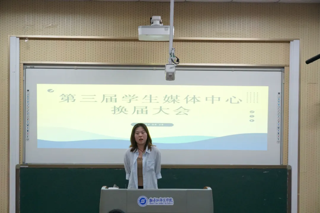 会议第三项议程,第三届学生媒体中心候选人进行竞选演讲。演讲内容主要从自我介绍、竞聘意向、竞聘优势、工作规划四个方面展开,充分展示了自己的才能与潜力,以及乐于奉献、服务同学、共创辉煌的决心与担当